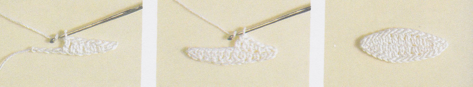 (obr. B), uháčkujeme 3 řet. oka, práci obrátíme, 11 dlouhých sloupků vpíchneme