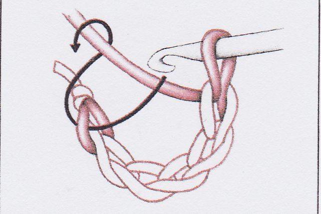 Řetízek uháčkujeme v považované délce a do kruhu ho uzavřeme pomocí pevného oka, které vpíchneme do prvního oka řetízku.