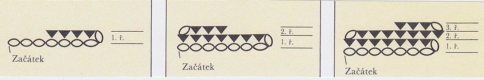 1.řada.Na konci řady uháčkujeme 2.řada.Na konci řady uháčkujeme 3.řada.Na konci uháčkujeme
