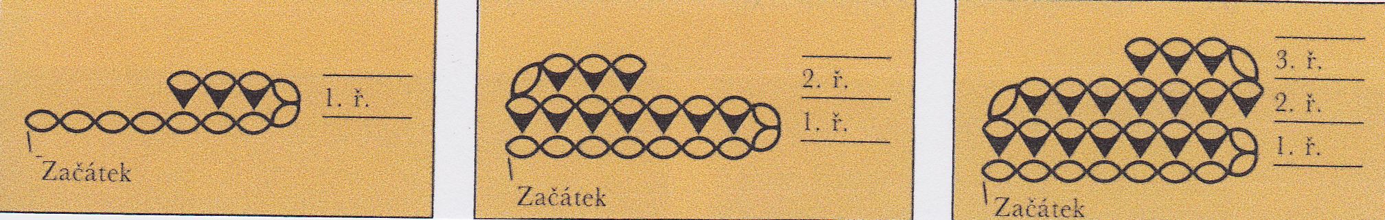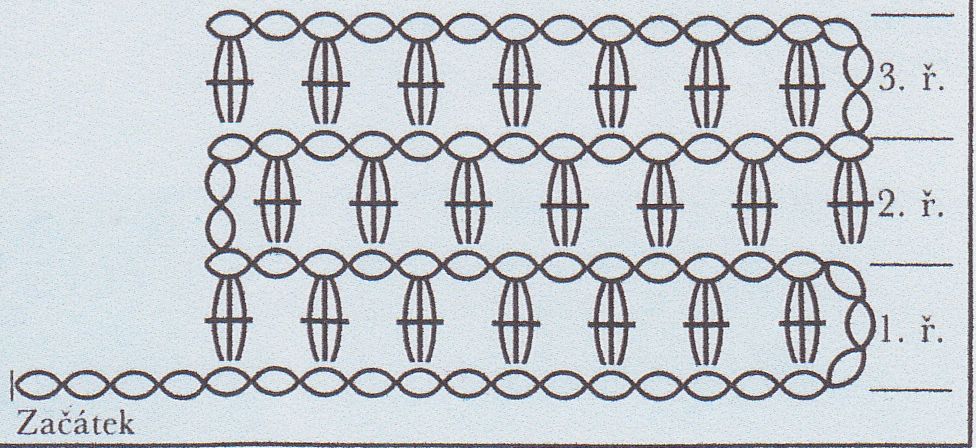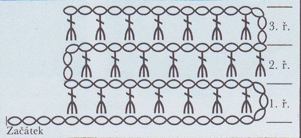 1.řada.Na konci řady uháčkujeme 2.řada.Na konci řady uháčkujeme 3.řada.Na konci uháčkujeme
